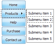 Click "Add button" and "Add submenu's item's buttons to create your menu. You can use ready to use Templates. To do it just select theme you like in the "Button themes" and "Submenu themes" list. Then you can browse this theme's button backgrounds. When you find a button background or submenu theme you like, double-click it to apply. Select vista button or submenu by clicking it and change button appearance for normal and mouse over states and set buttons/submenus link properties and link target attributes.Save your menu as project file, as HTML page or insert your menu into the existing HTML page