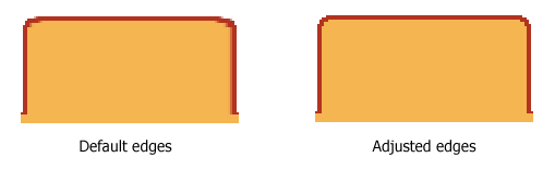Press "Edit Properties..." button to edit button edges width. By default, when you add new button, its edges widths are set to 5. But if you will change preview button size to 100x50 or bigger, you will see that some image elements look "fuzzy" (left image on the picture below). It happened because the play buttons border is not within the edge area. Set both horizontal and vertical edges width to 10. You can see that the result looks much more precise now. Border is not resized because it is within the edge area now (right image on the picture above).